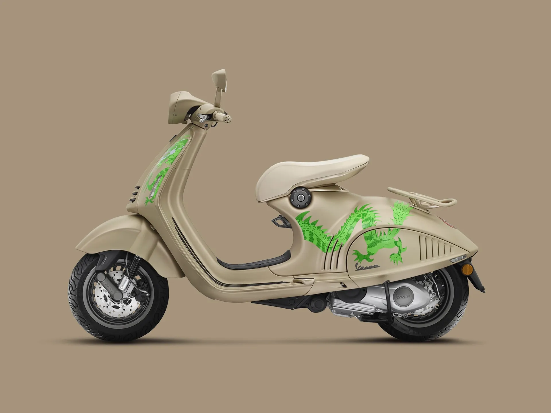 Disponível em uma edição limitada de 1888 motos numeradas e destinada a se tornar um item de colecionador, a Vespa 946 Dragon é uma homenagem tanto à majestosa e poderosa criatura mística que dá nome a ela quanto ao calendário lunar. Cada unidade do Dragon é feita à mão na Itália e reinterpreta os elementos mais icônicos dos primeiros protótipos da Vespa de forma contemporânea, apresentando o arquétipo da Vespa do futuro.