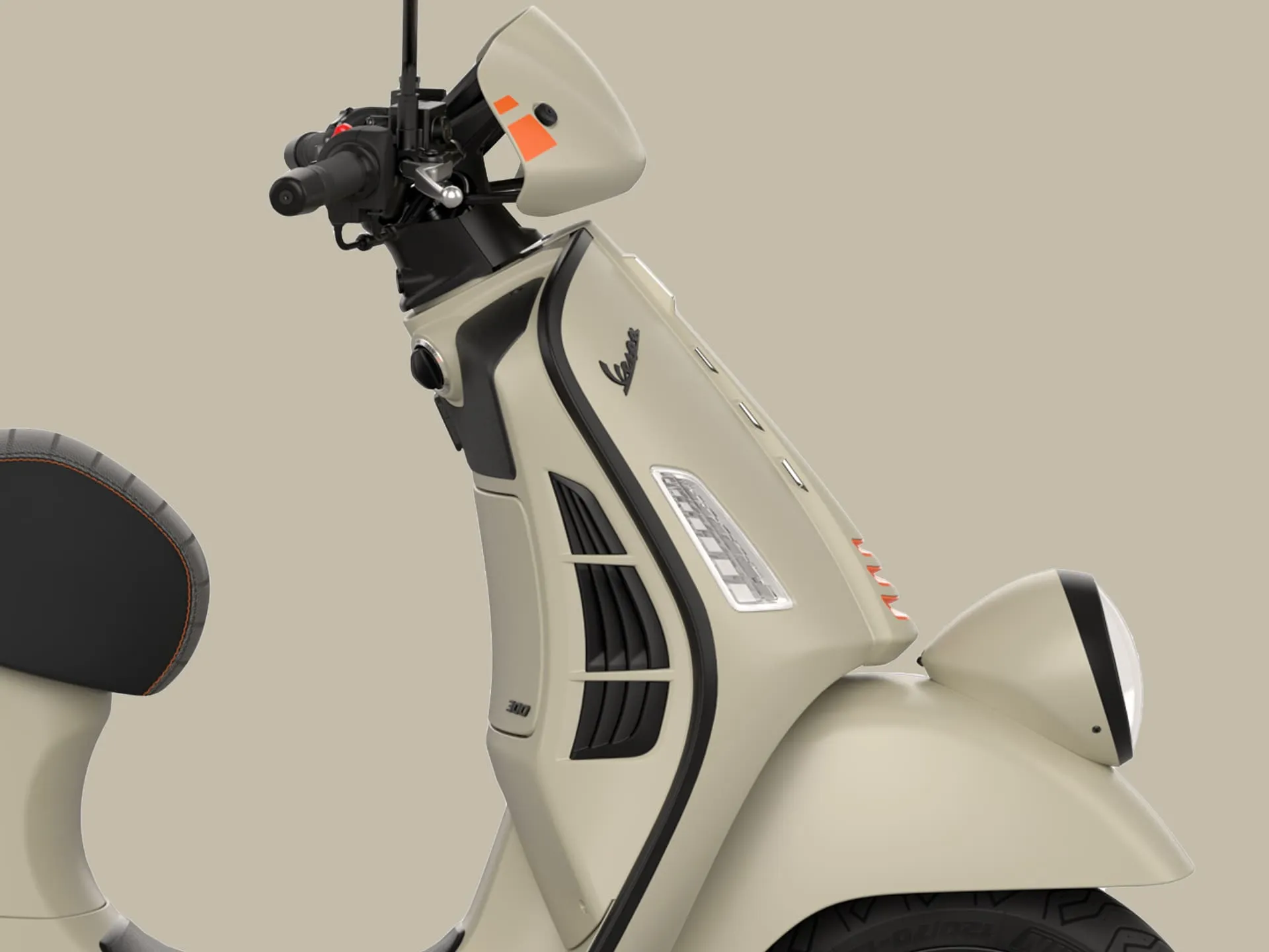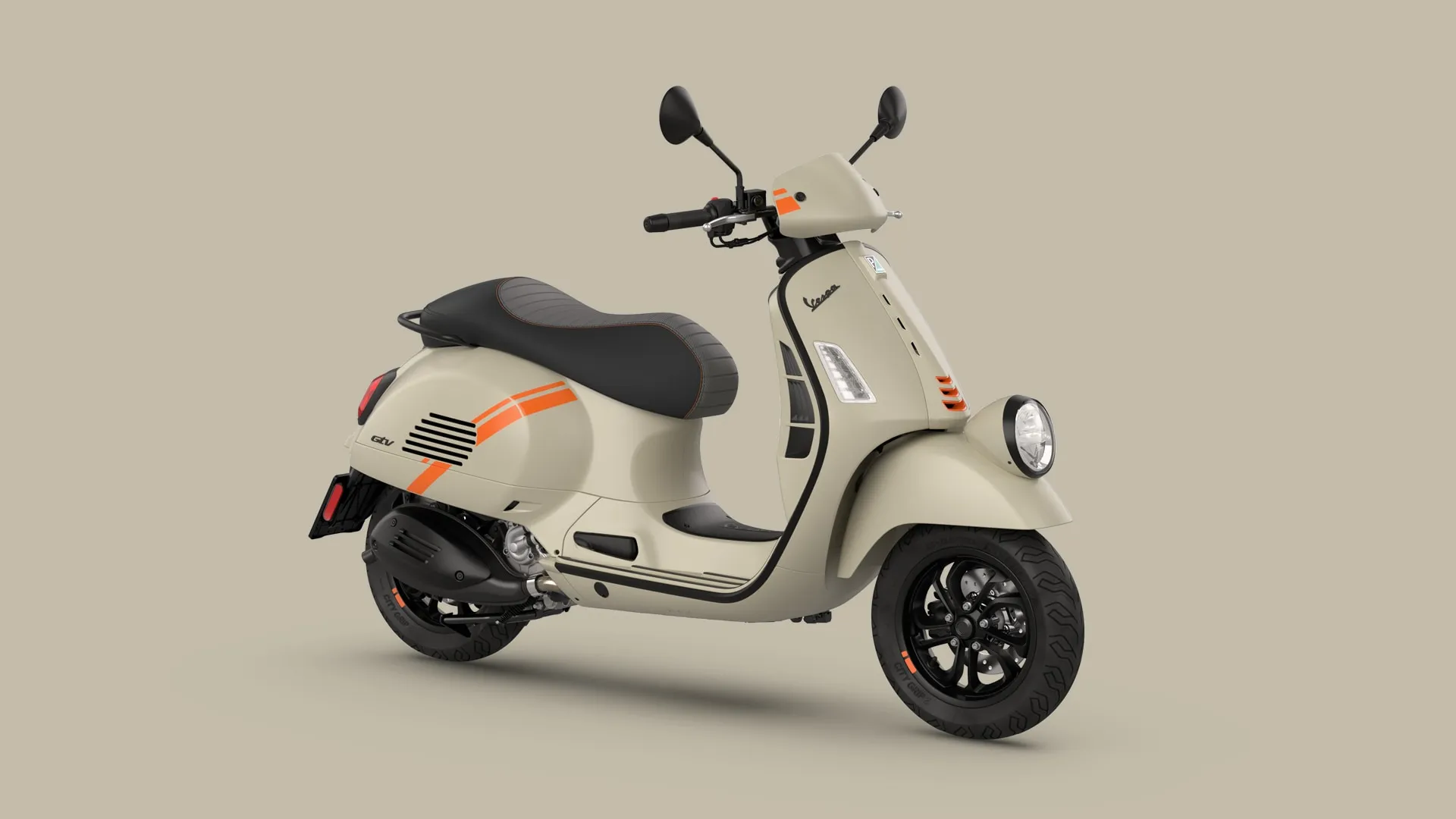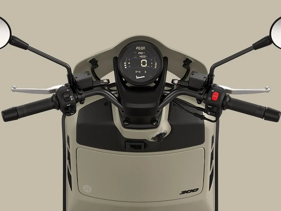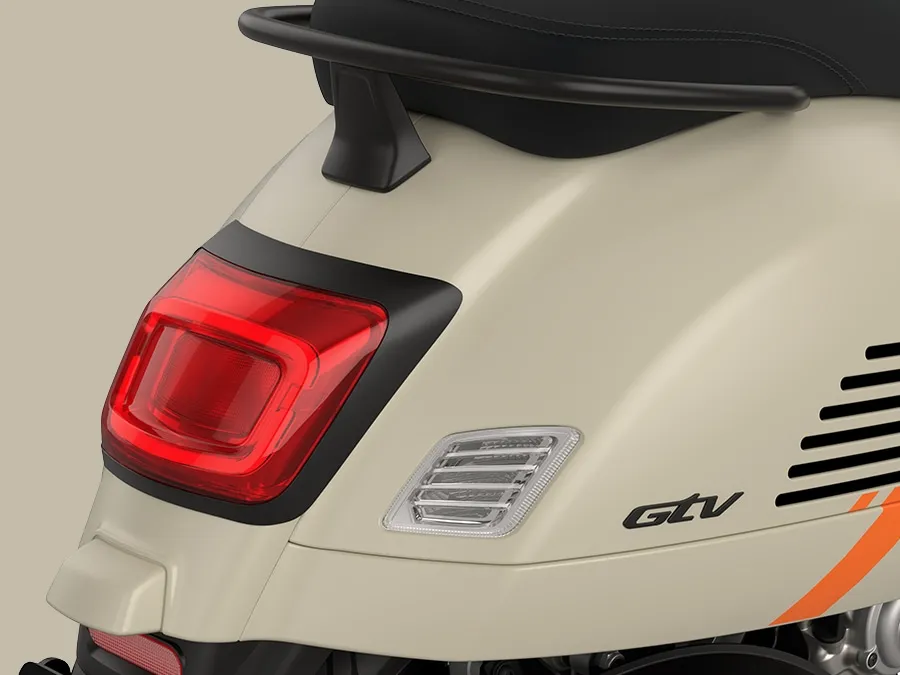 O modelo mais recente mantém as características icônicas da GTV, como o distinto guidão tubular exposto e o farol baixo no para-lama dianteiro, e adiciona elementos tecnológicos elegantes que ressaltam seu caráter inovador. O banco de uma só pessoa, a pintura bicolor, o quebra-vento e os detalhes em preto fosco são apenas algumas das características que conferem à Vespa GTV sua personalidade esportiva.